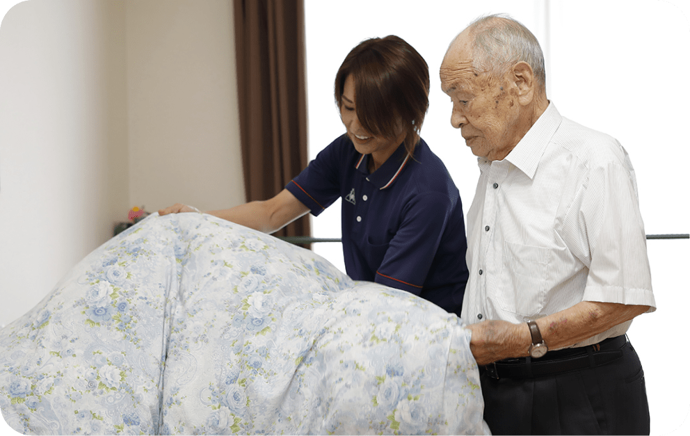 かんべ村ご自宅で安心して毎日を過ごせるように。ホームヘルパーによる笑顔のお手伝い。